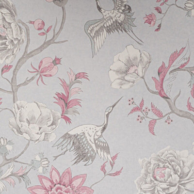 Midsummer Pink and Silver metallic modern floral wallpaper Pink Very well made.