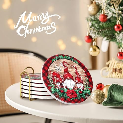 Cute Christmas Drink Coasters with Holder Ceramic Absorbing Cup Coaster Set of 6 Xmas Table Coasters Stone Coa Very well made.