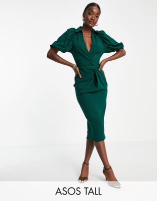 Vestido camisero midi verde botella con dise o cruzado y detalle Very well made.
