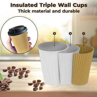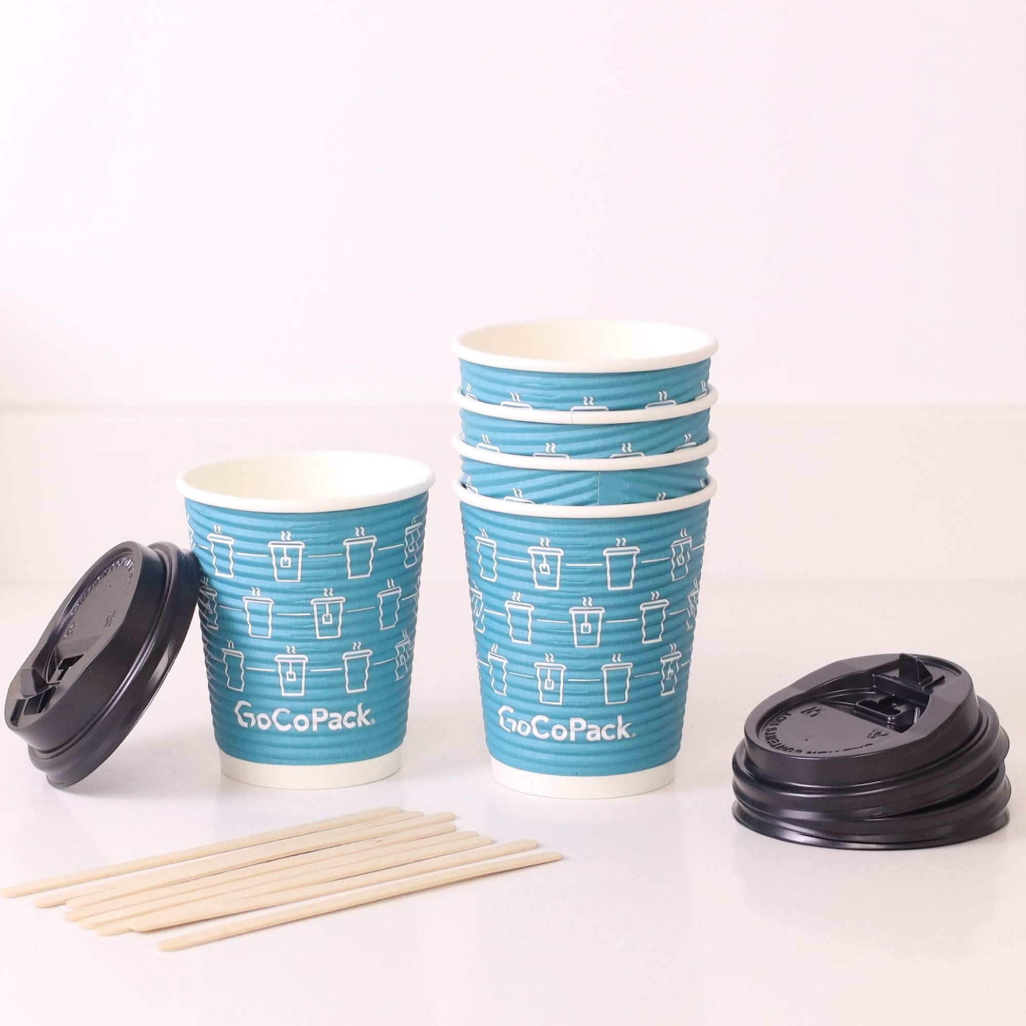 GoCoPack Spiral Wall Paper Cups with Lids Stirrers Available in 8oz 227ml or 12oz 340ml Triple Wall for Heat Protection Ideal for Hot Drinks Come in Sets of Very well made.