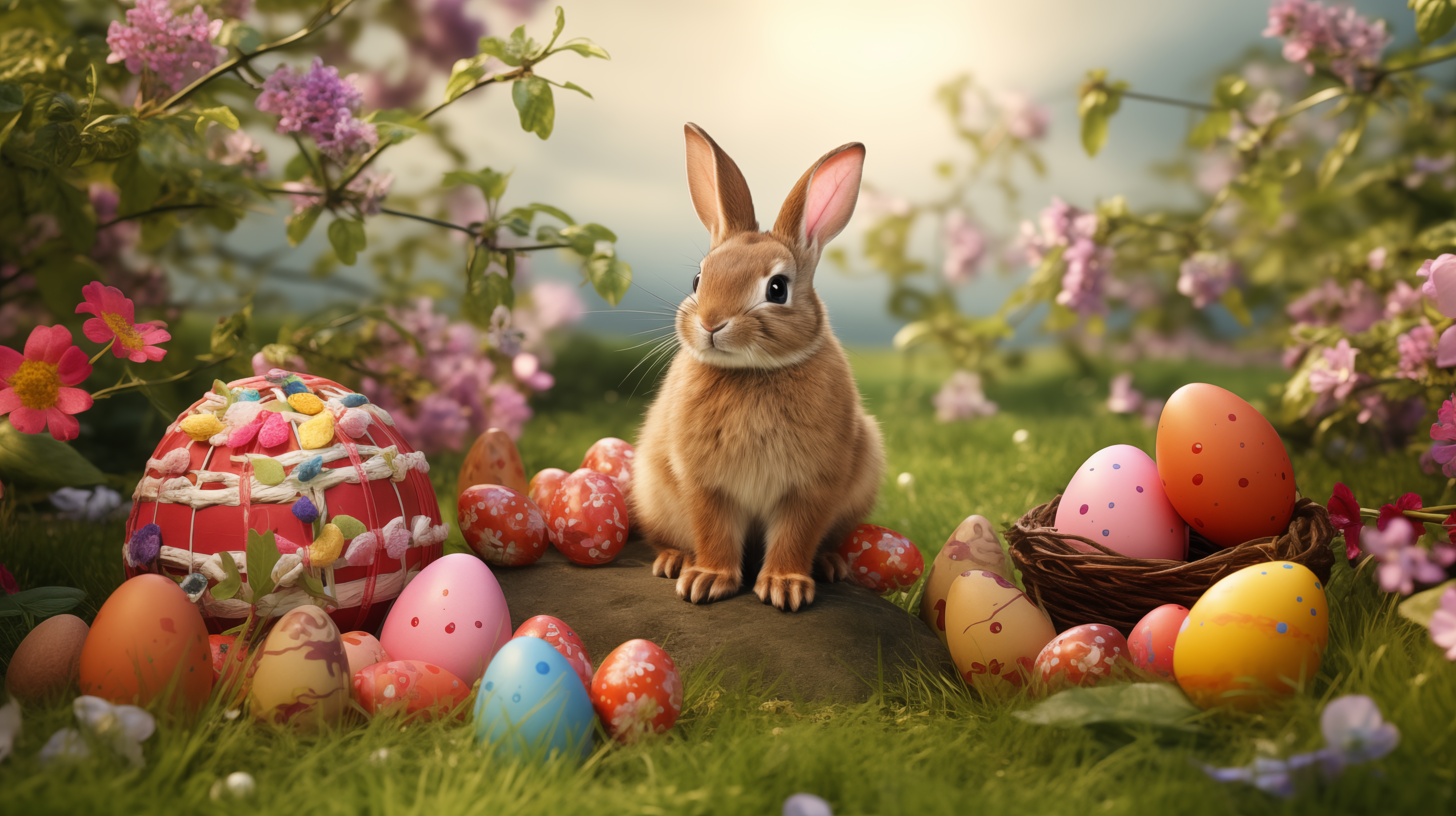 Easter Bunny with Colorful Eggs HD Wallpaper by robokoboto Very well made.