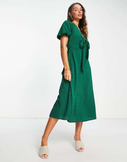Vestido midi verde intenso con lazada en la parte delantera de sirsaca de Mango Very well made.