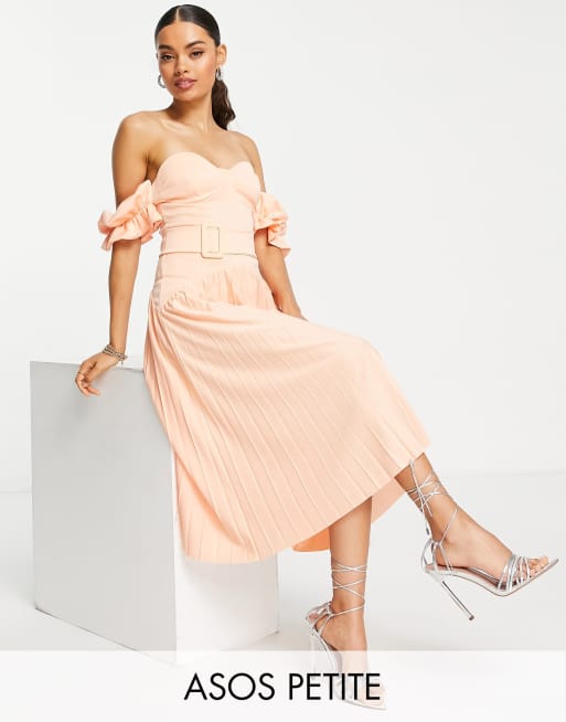 Vestido midi naranja con escote Bardot y cintur n de ASOS DESIGN Petite ORANGE Very well made.