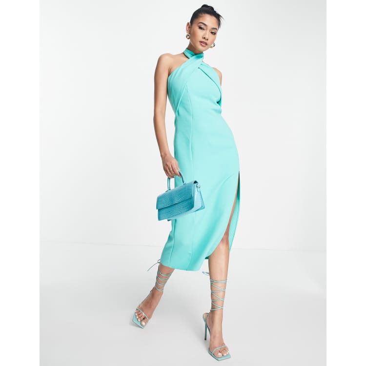 Vestido midi con plisados y cuello halter anudado de ASOS DESIGN Very well made.