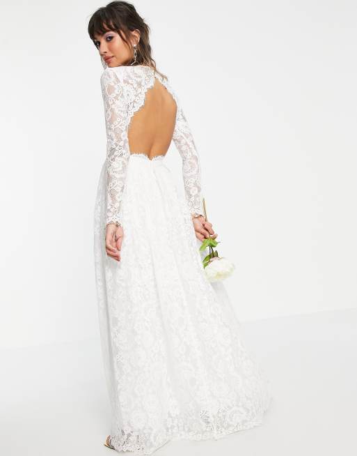 Vestido de novia de manga larga con espalda al aire de encaje Very well made.
