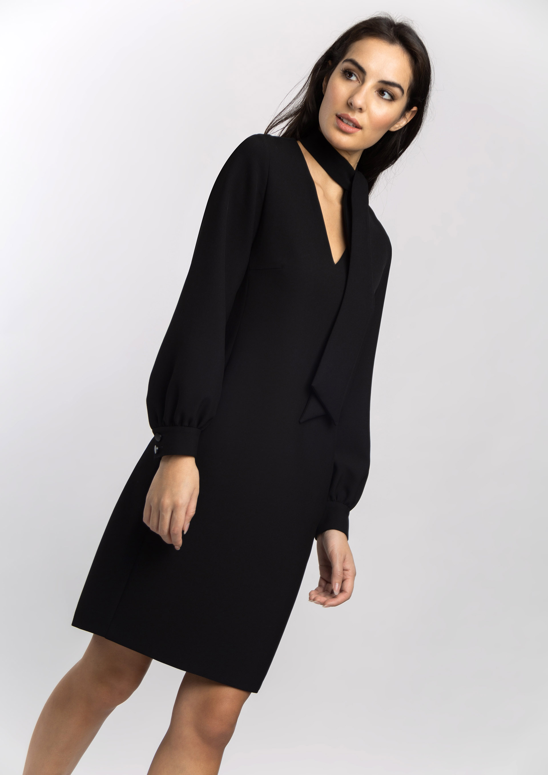 Vestido midi de cuello halter color negro para mujer abertura lateral Very well made.