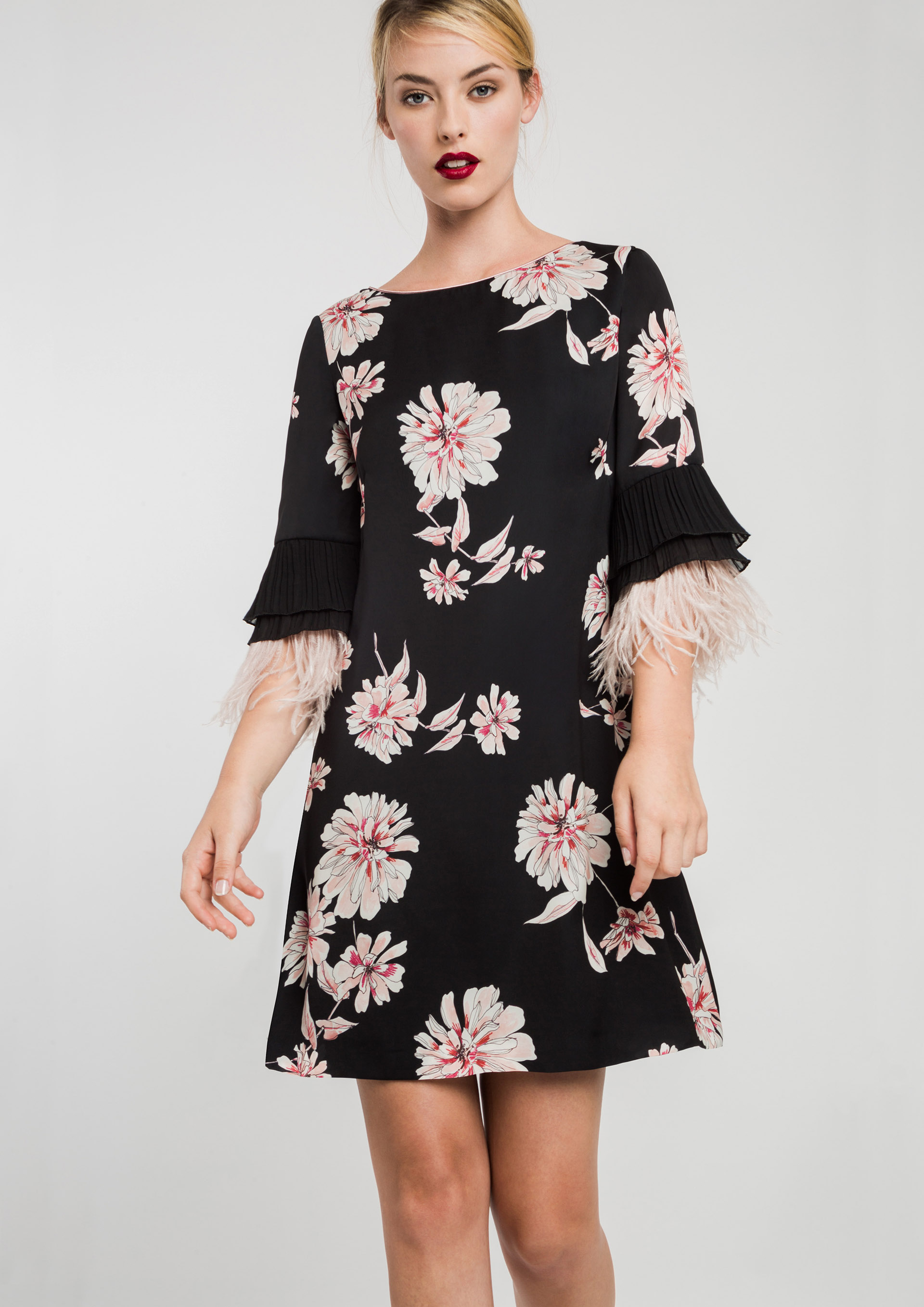 Vestido negro estampado flores de invierno I.Code Very well made.