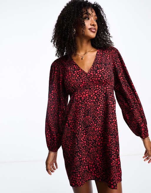 Vestido corto rojo y negro con estampado de corazones y mangas abullonadas de Wednesday s Girl Very well made.