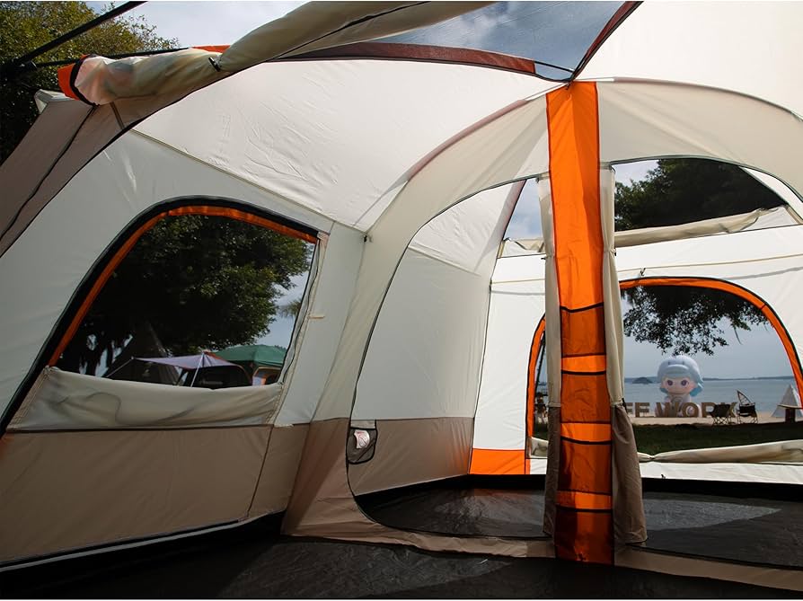 KTT Extra Large Tent 12 Person Family Cabin Tents 2 Rooms 3 Doors and 3 Windows with Mesh Straight Wall Waterproof Double Layer Big Tent for Outdoor Picnic Camping Family Gathering Light Brown Amazon.... Very well made.