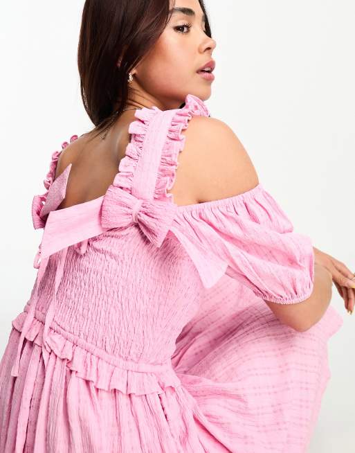 Vestido corto rosa texturizado con detalle de lazo de Neon Rose ASOS Very well made.
