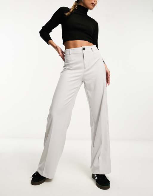 Bershka Petite wide leg tailored pants in pale gray Very well made.