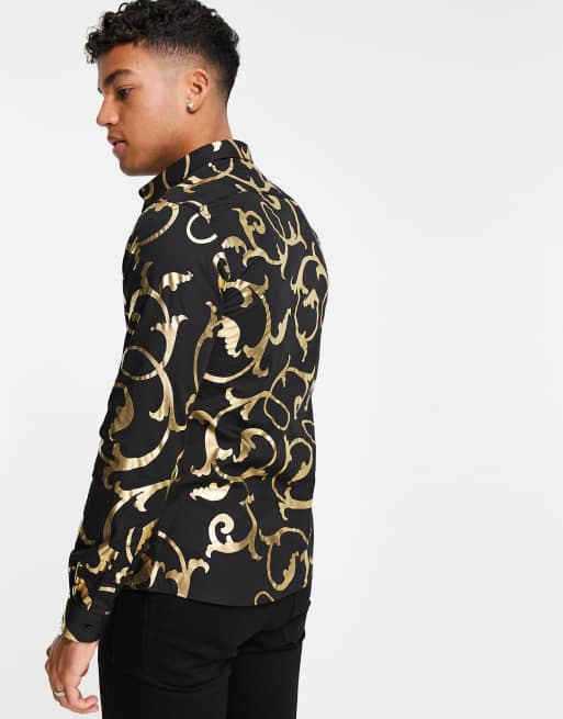 Camisa negra entallada con estampado dorado metalizado Axl de Twisted Tailor Very well made.