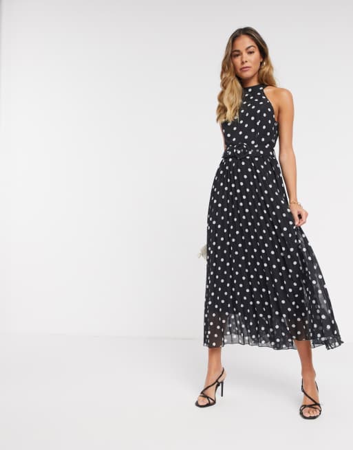 Vestido semilargo plisado con cuello halter y cintur n con lunares en contraste de Style Cheat Very well made.