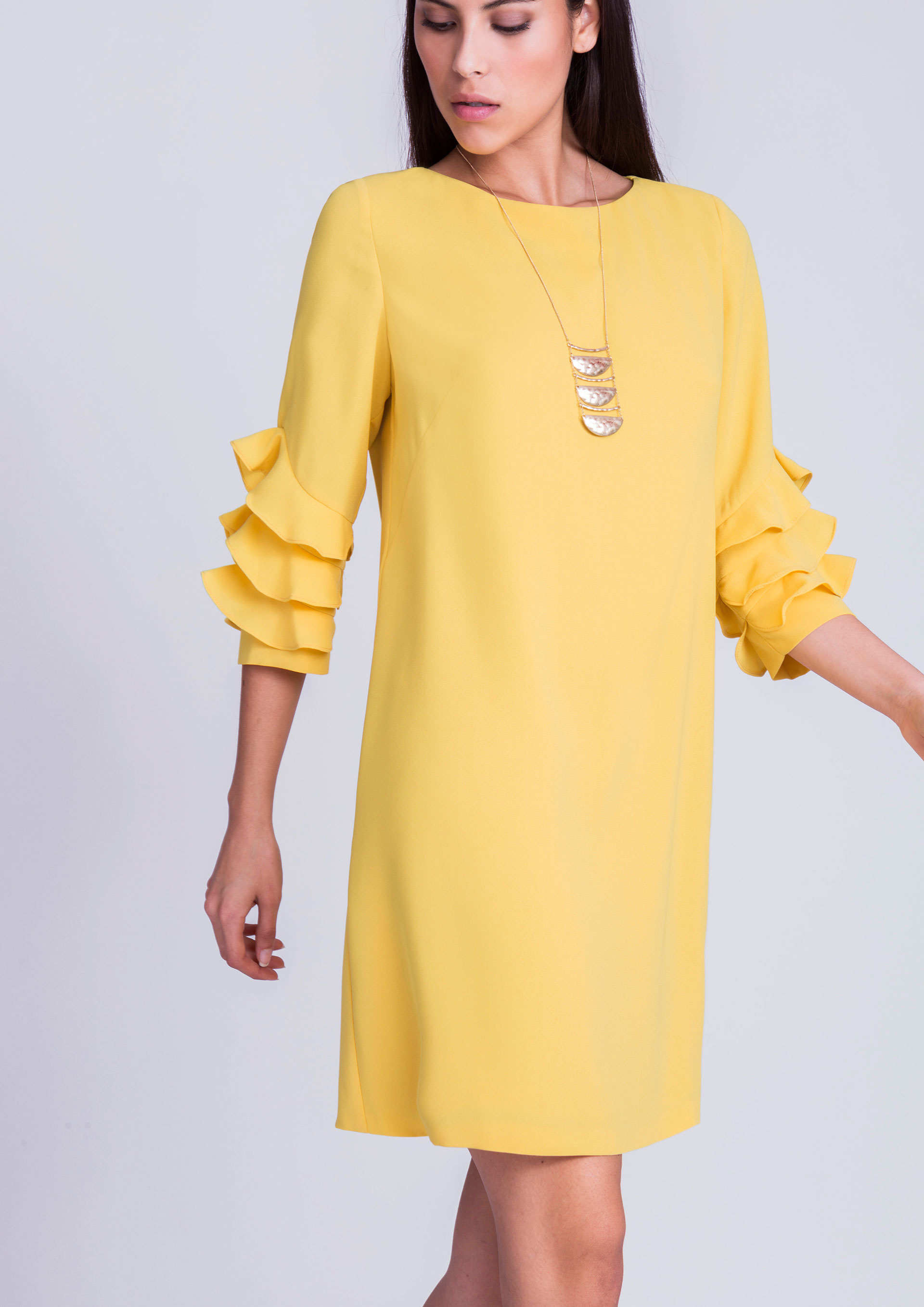 Vestido amarillo midi con volantes Vestido asim trico Trajes Very well made.