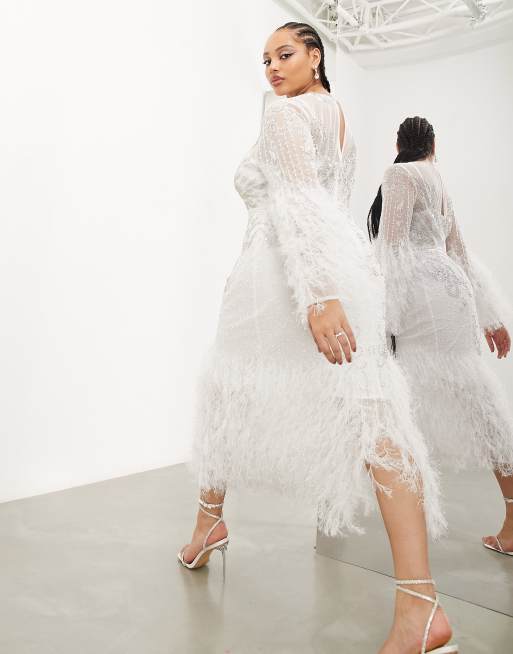 Vestido midi rosa rubor de manga larga con dise o adornado de cristales y pu os de plumas sint ticas de ASOS EDITION Very well made.