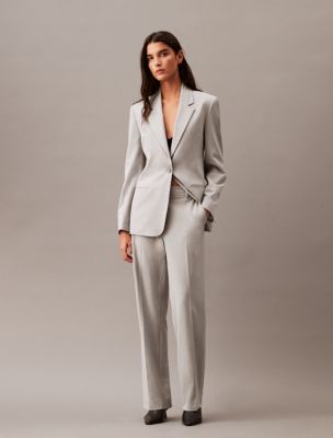 NWT CALVIN KLEIN Gray Pant Suit Sz 8 Business Career Women s Belted Lined 180 eBay Very well made.