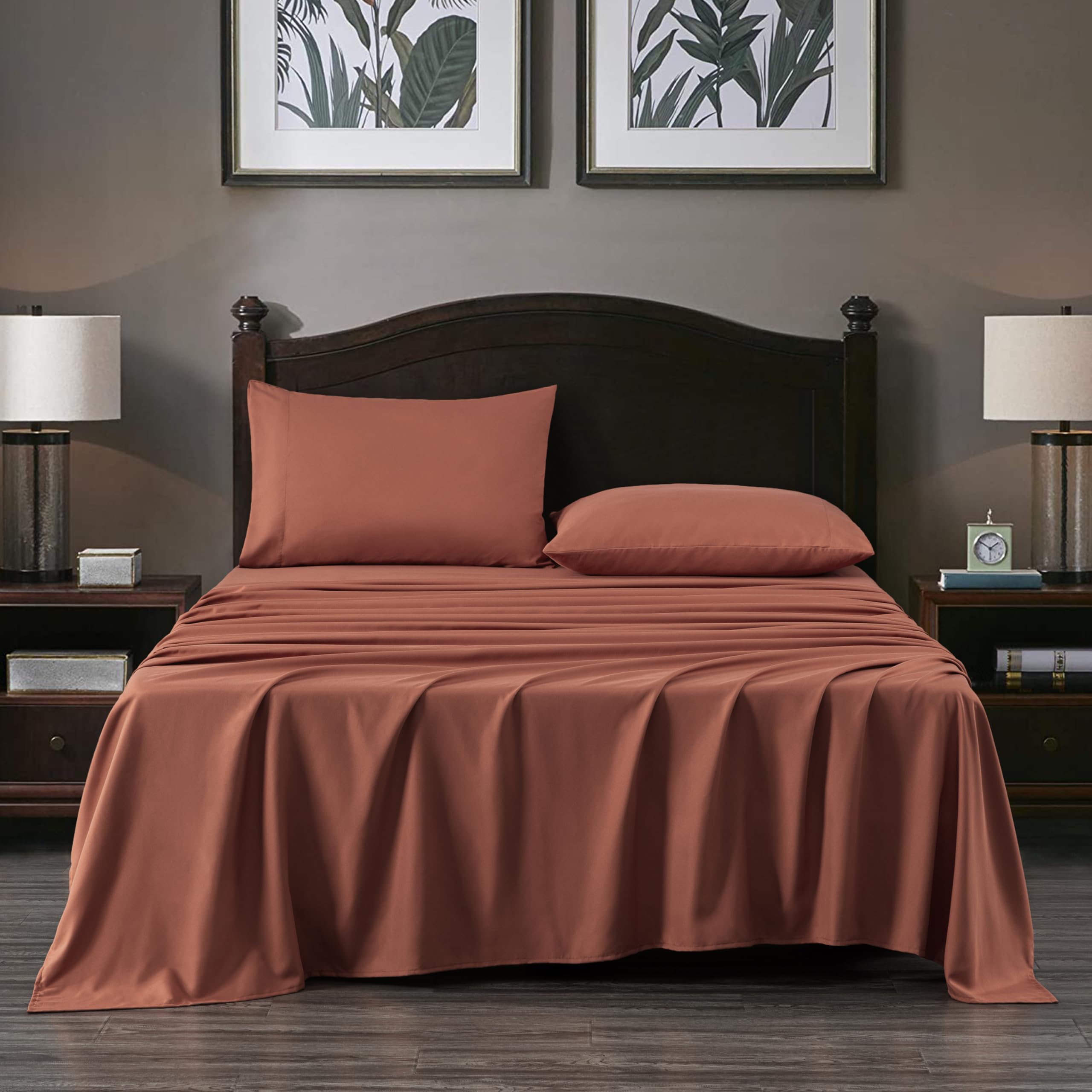 Chezmoi Collection 4 Piece Terracotta Sheet Set Queen size 110gsm Peach Skin Brushed Microfiber Polyester Deep Pocket Bed Sheets Pillowcases Very well made.
