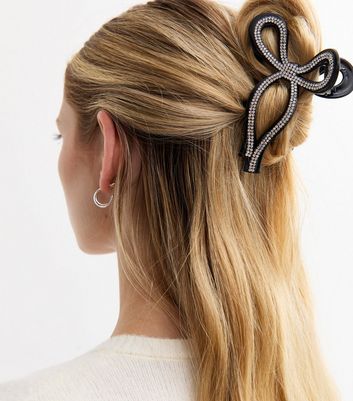 Black Diamante Embellished Bow Hair Clip Very well made.
