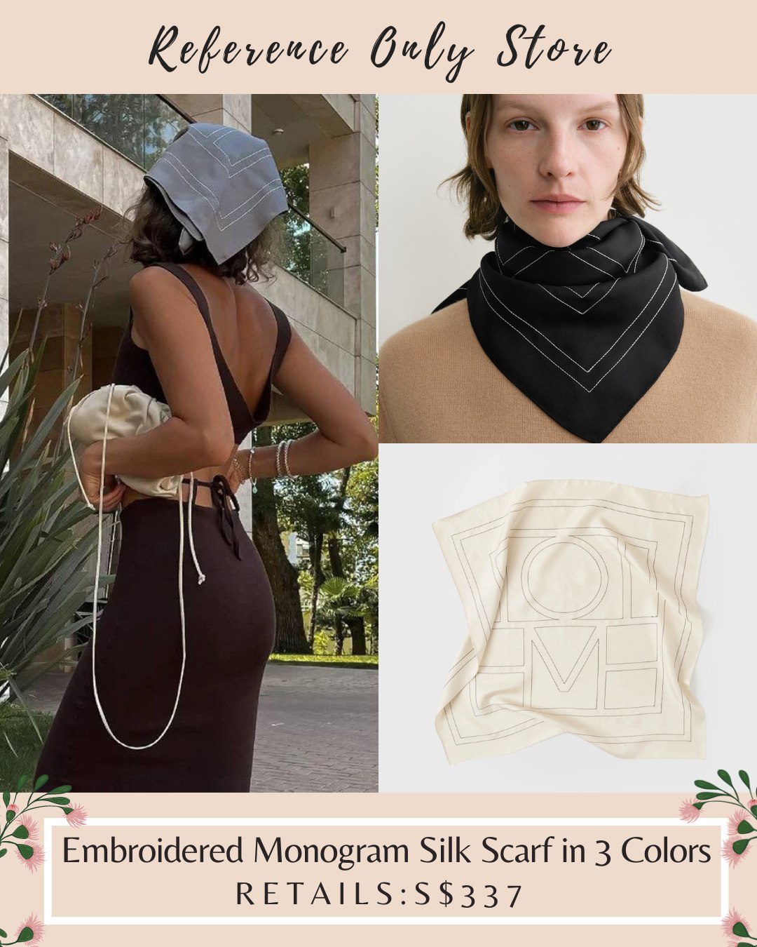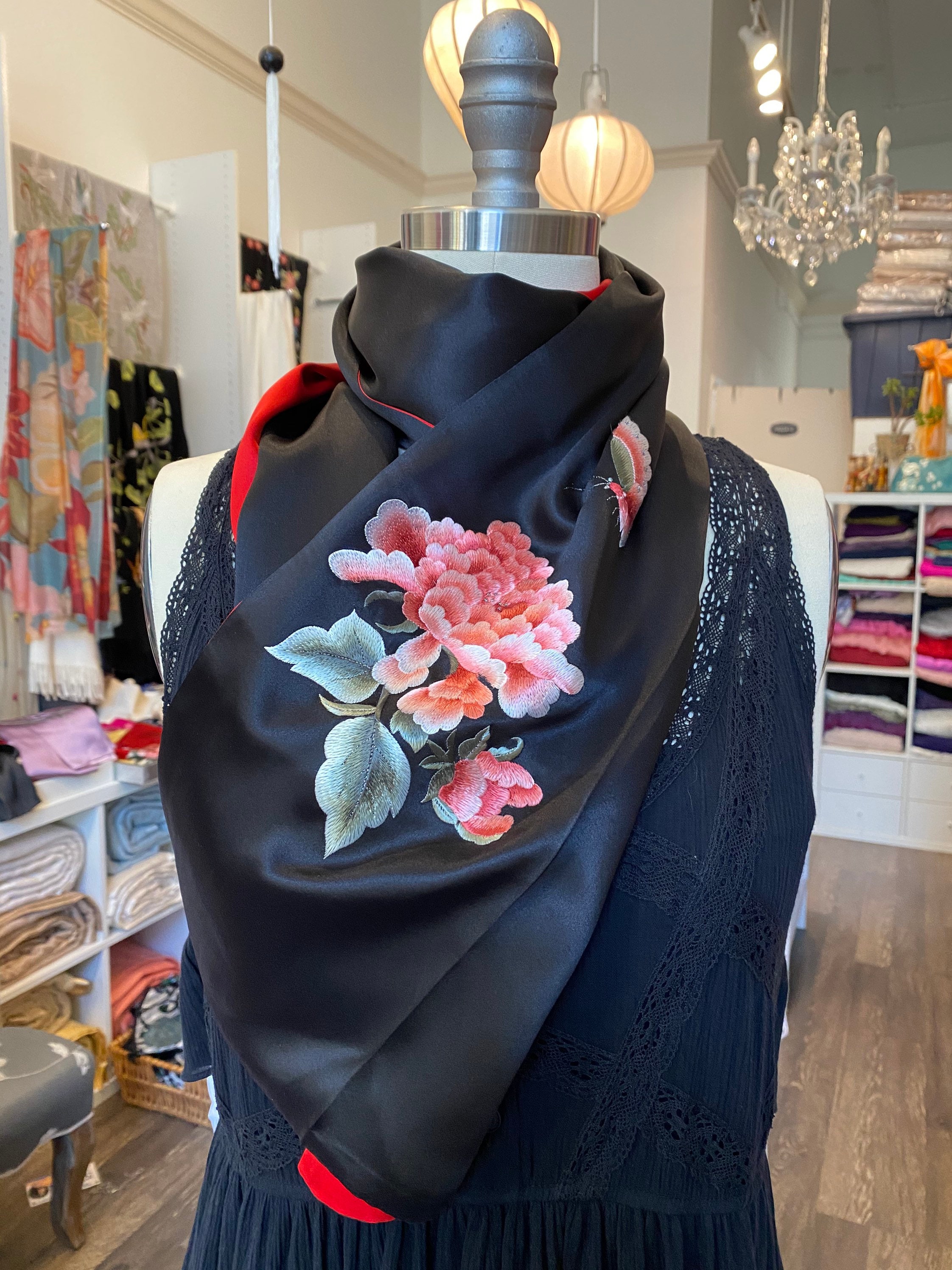 Tot Embroidered Silk Scarf in 3 colors 57cm x 57cm Very well made.
