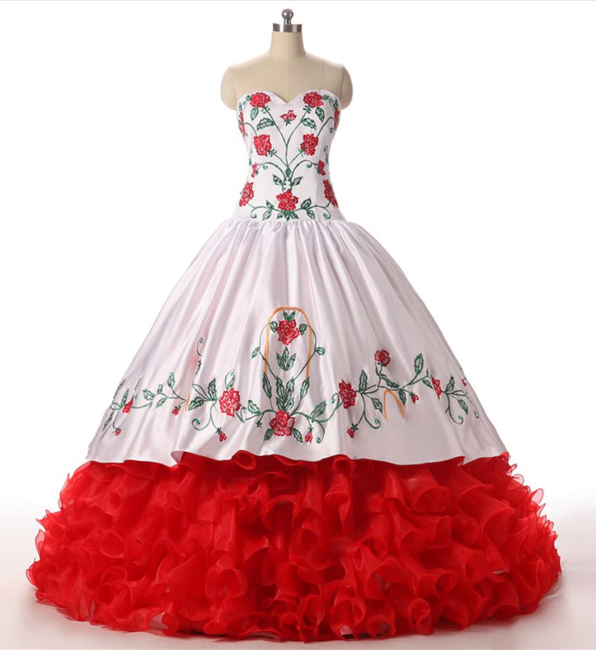Vintage Quinceanera Dresses Prom Dress 2017 Ball Gown Red White Very well made.