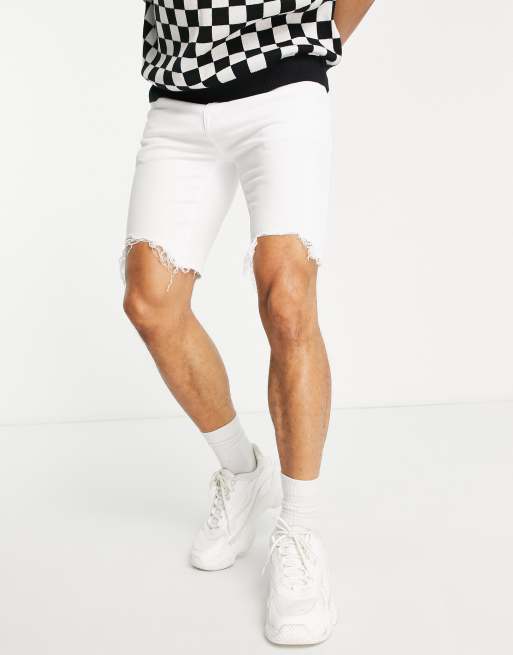 Pantalones cortos vaqueros blancos entallados de largo est ndar con dise o rasgado de ASOS DESIGN Very well made.