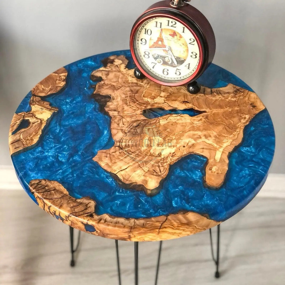 Blue coffee table in olive wood Art Wood Lab Very well made.