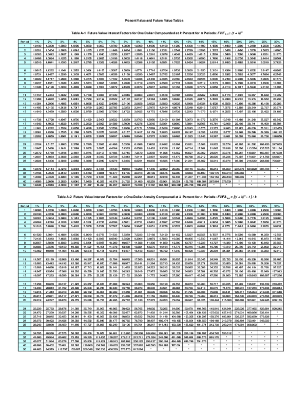 PDF Present Value and Future Value Tables Table A 1 Future Value Interest Factors for One Dollar Compounded at k Percent for n Periods FVIF k n 1 k n Very well made.