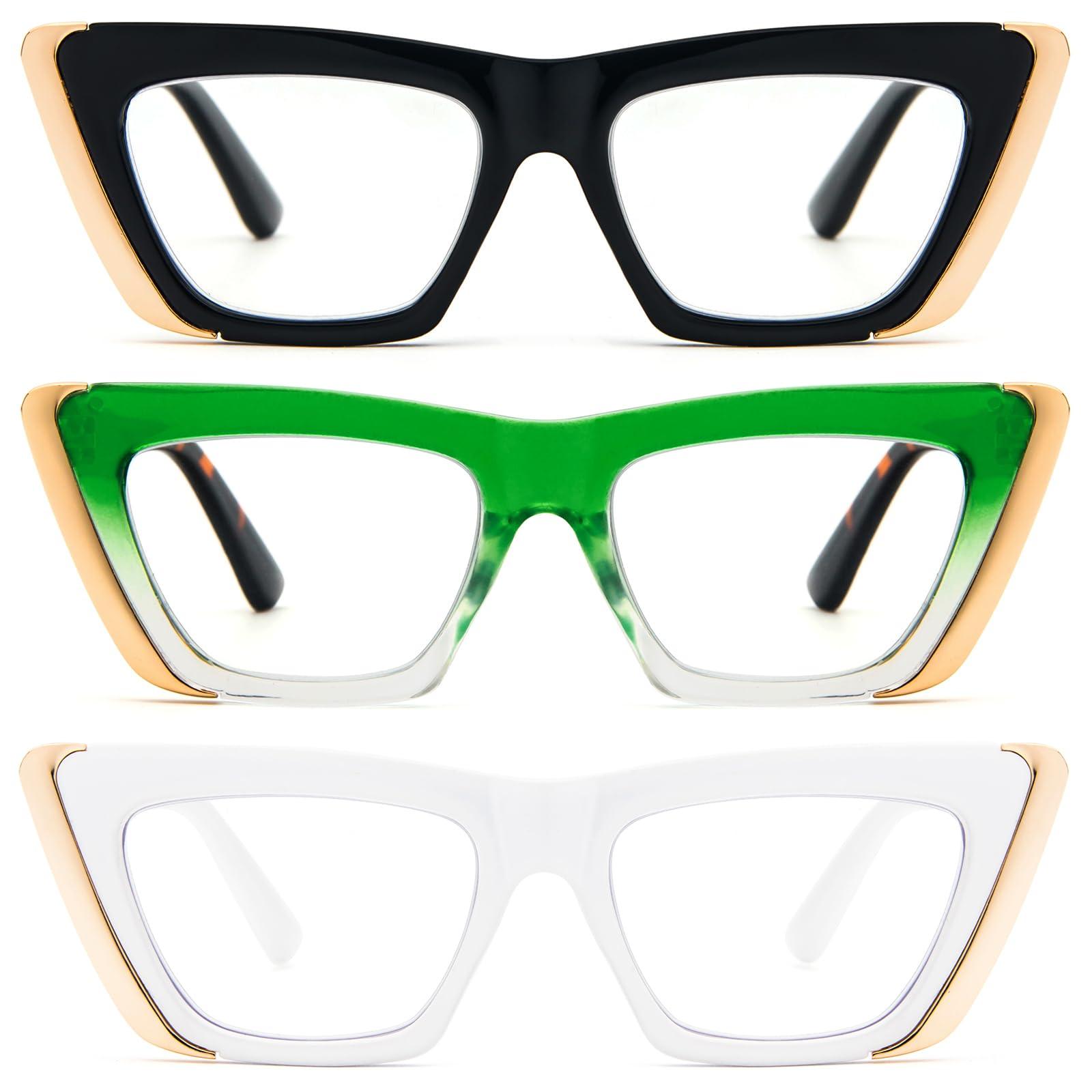 MMOWW Cat Eye Reading Glasses 3 Pack for Women Blue Light Blocking Fashion Cute Computer Readers with Spring Hinge 1.0 Very well made.