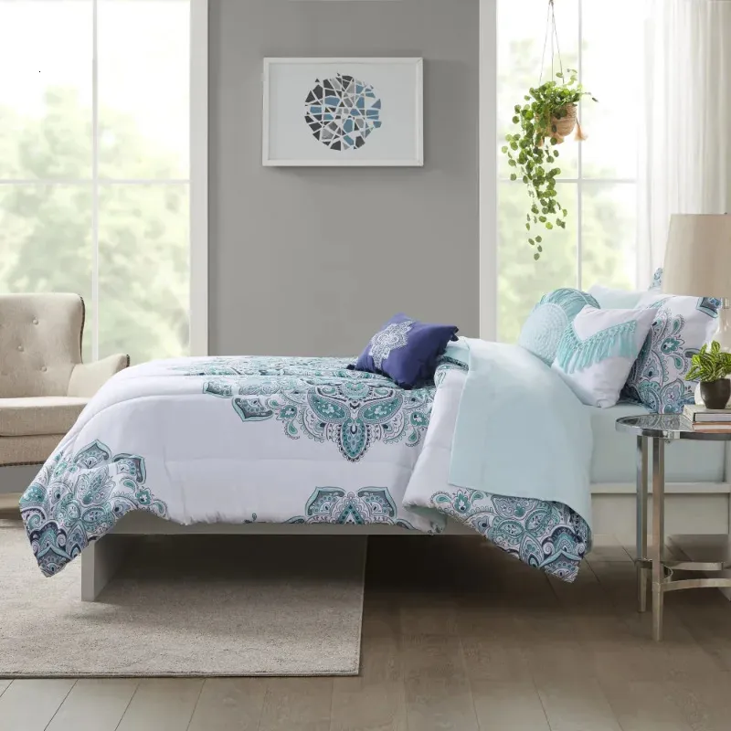DHgate Mainstays Teal Medallion 10 Piece Bed in a Bag Comforter Set with Sheets 100 Polyester Teal Full Queen Home Garden Very well made.