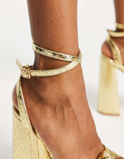 Glamorous Sandales plateforme et talon effet serpent Dor ASOS Very well made.