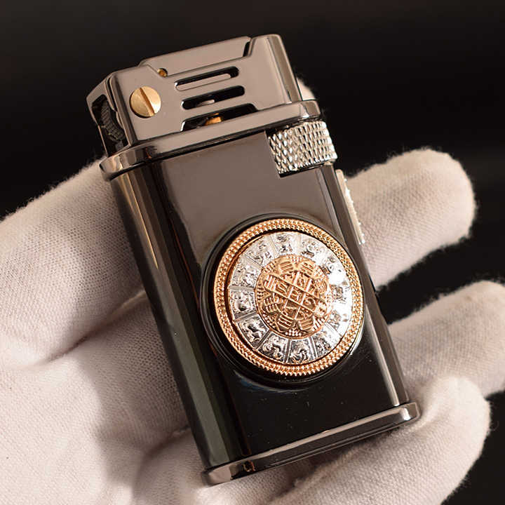 Briquet kerosene de marque principale signes du zodiaque mode gravee plateau tournant classique allumage automatique allume Very well made.