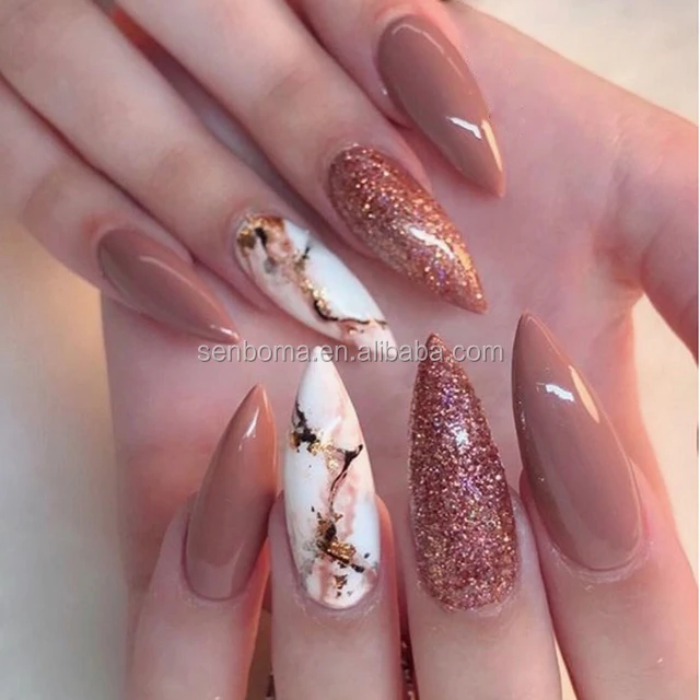 Fake False Coffin Press on Nails Glitter Marble Nails Artificial Fingernails Fashion Nails Very well made.