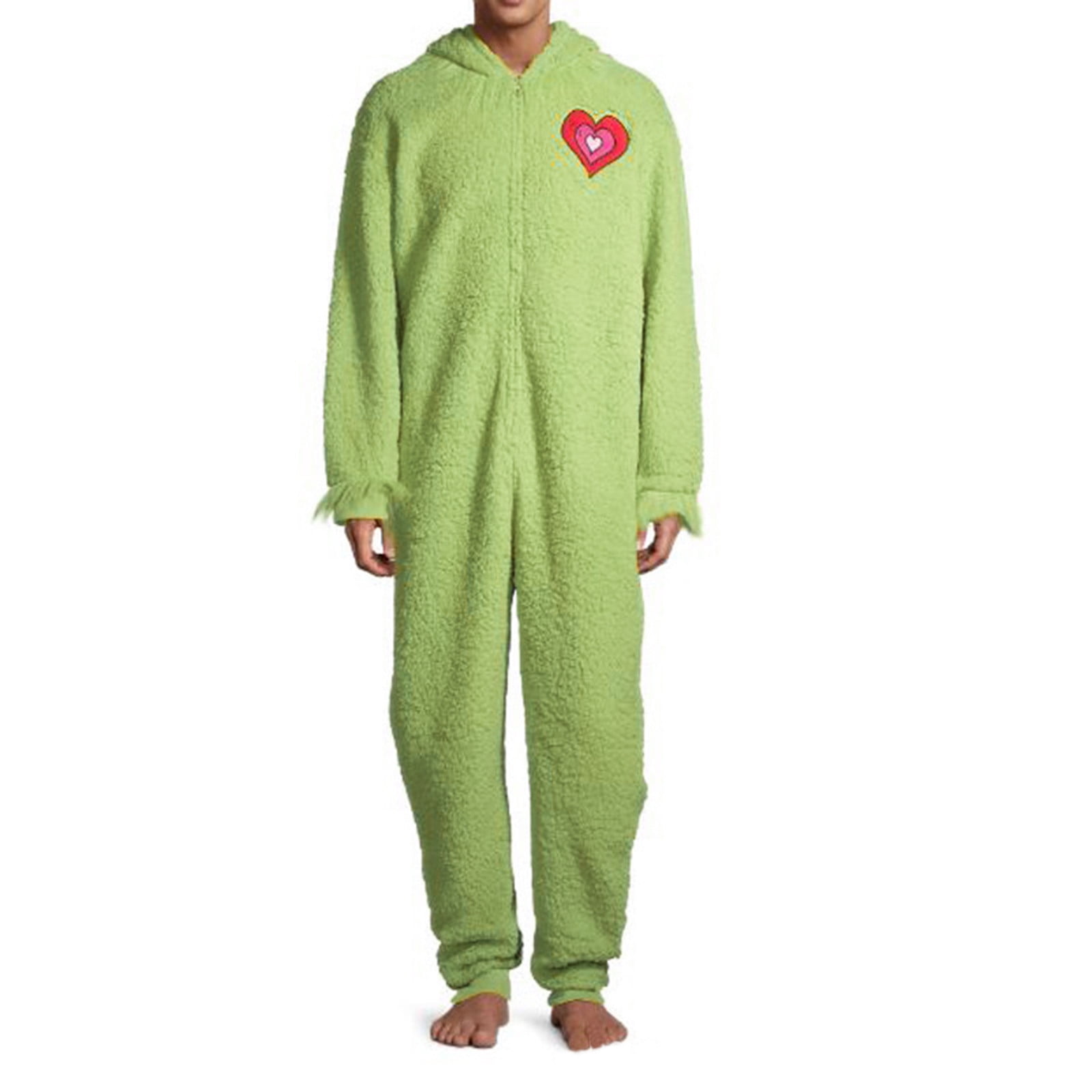 Christmas Grinch Pajamas For Family Grinch Santa Claus Cozy Green Fleece Pajama Onesie with Hood and Heart Patch for Adults Perfect for Winter and Holiday Season Walmart Very well made.