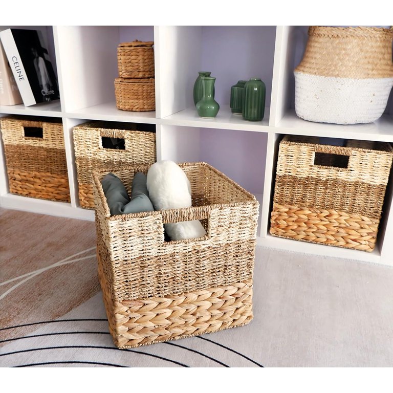 Wicker Storage Cubes 10.5 x 10.5 Set of 4 Heavy Duty Hyacinth Square Baskets for Shelf Storage Cube Bins 11x11 Cube Storage Bins 11x11 Cubby Kallax Inserts Walmart Very well made.