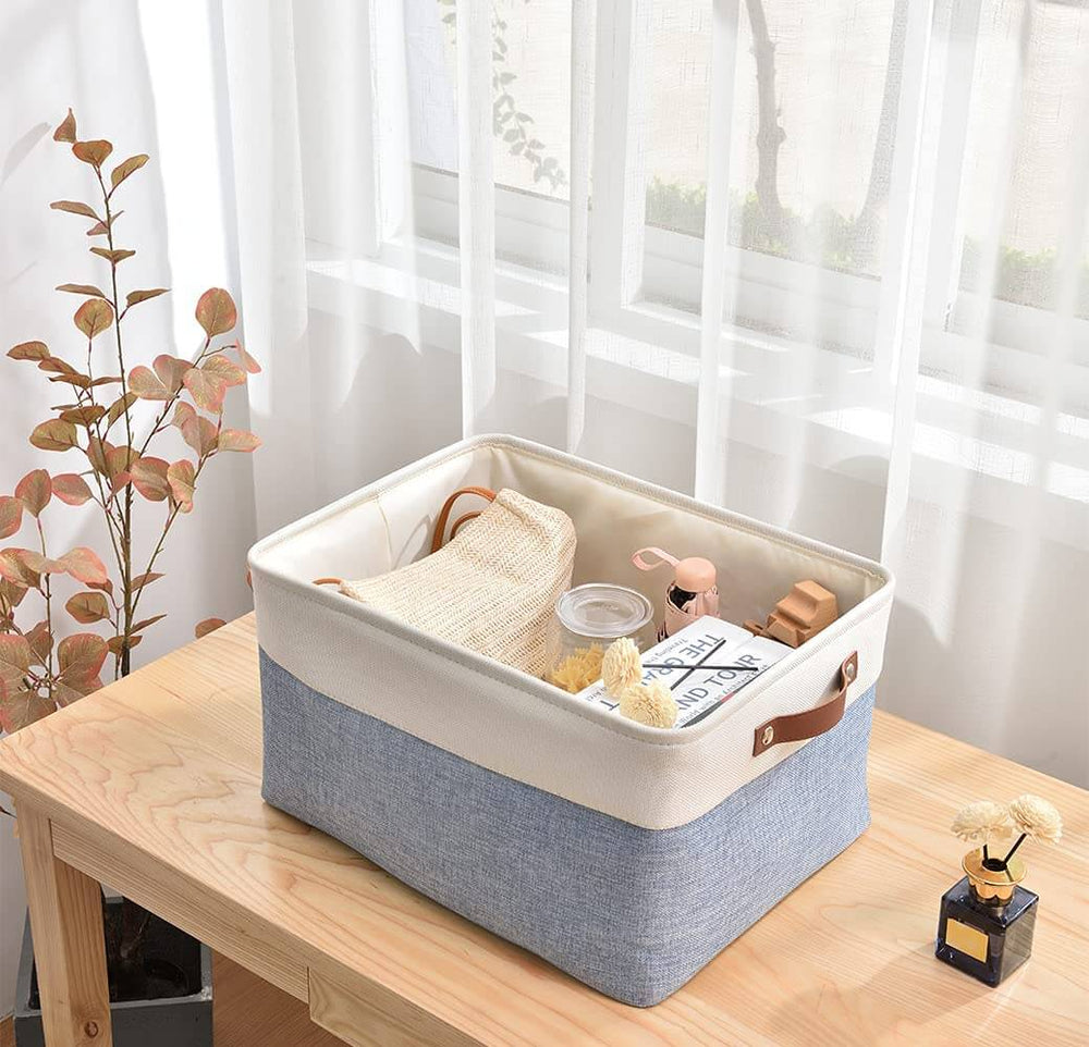 Fabric Storage Box Nursery Storage Basket with Lids Modern Leather Handle for Easy Pull out Blue White Mangata Very well made.