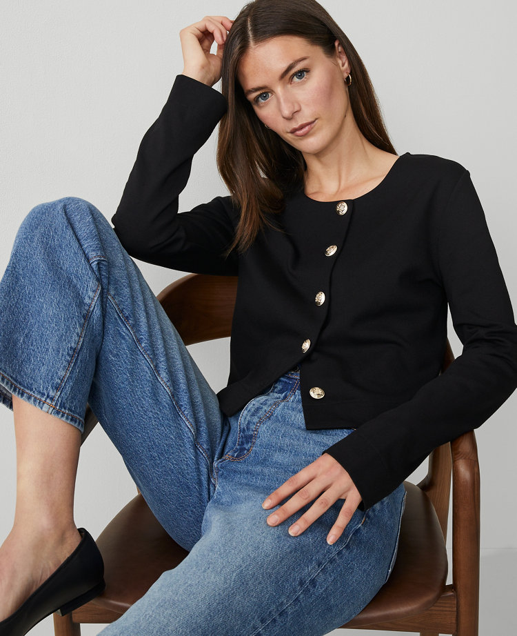 Jacket with crewneck and 3 4 length sleeves WHITE Very well made.