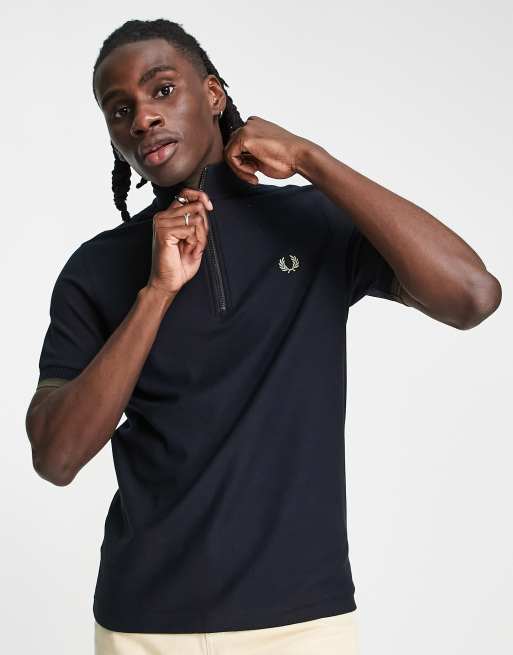 Fred Perry Men s Taped Zip Neck Polo Shirt Regular Fit Black in Very well made.