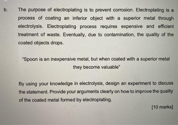 Solved b. The purpose of electroplating is to prevent Chegg Very well made.
