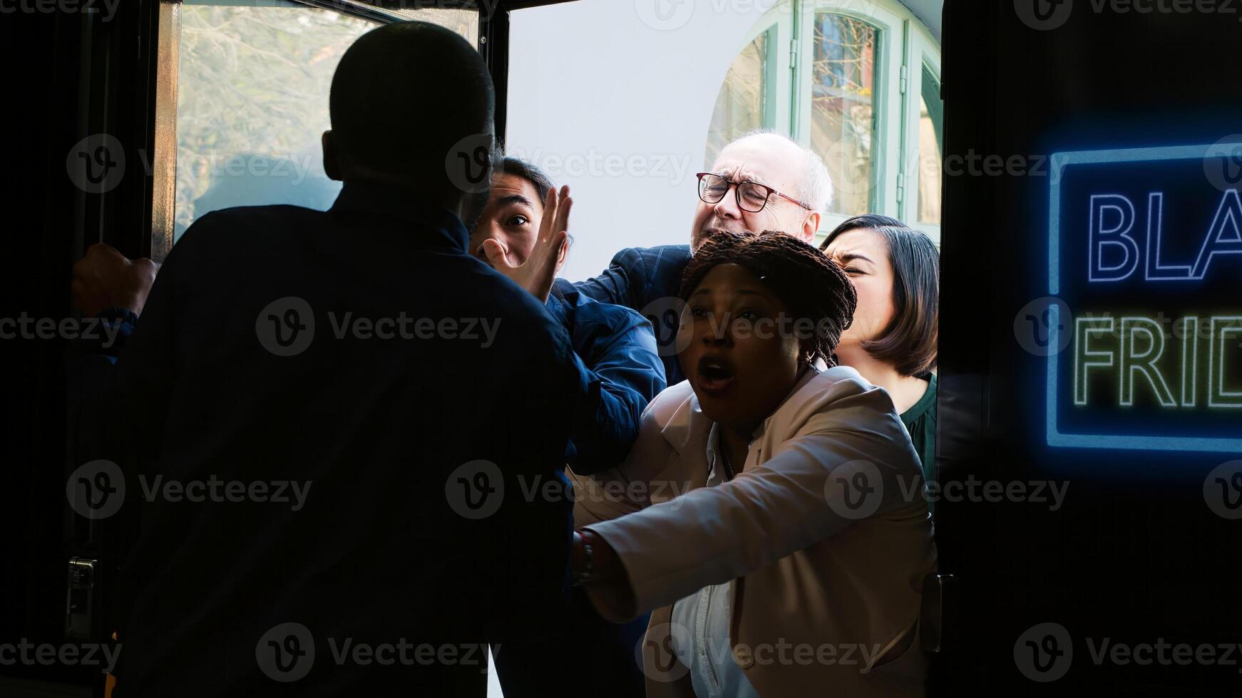 Black Friday Midnight Madness Shoppers Entering the Store and the Frenzy of Bargain Hunters Deals Premium AI generated image Very well made.