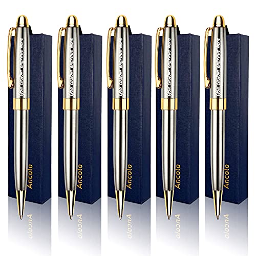 Ancolo Personalized Luxury Ballpoint Pen Writing Set Stainless Steel Fancy pens Custom with Your Name or Message Perfect for Very well made.