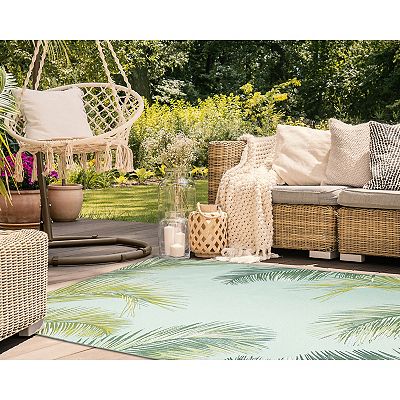 Tropical Outdoor Rug Palm Tree Jungle Design Flatweave Very well made.