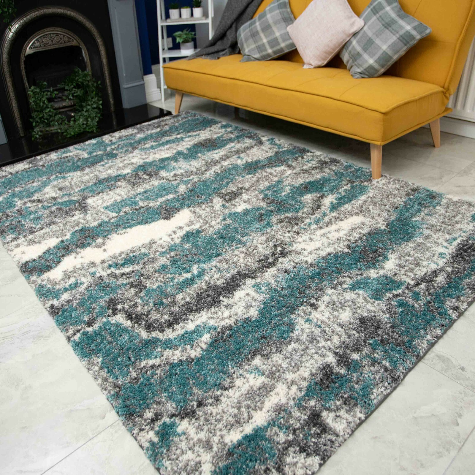 Teal Blue Shaggy Rugs For Living Room Teal Grey Cloud Effect Rug Deep Pile eBay Very well made.