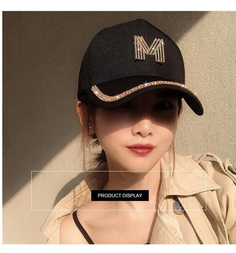 Letter M Women s Bling Baseball Cap Ladies Fashion Caps with Rhinestones Snapback Hip Hop Hats Black White AliExpress Very well made.