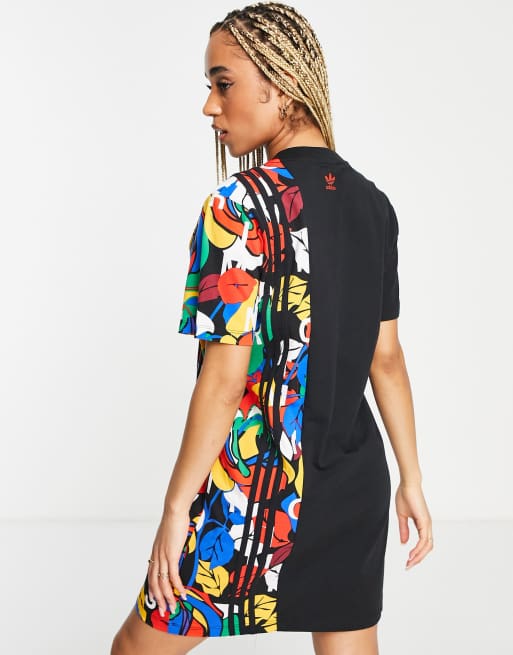 adidas Originals x rich Mnisi spliced floral print t shirt dress in black and multi ASOS Very well made.