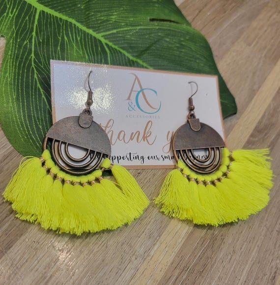 Tassel Wood Earring Fashion Jewelry Green Mia Miami Boutique Nude Long Black 3.5 Inches Long super Light Etsy Very well made.