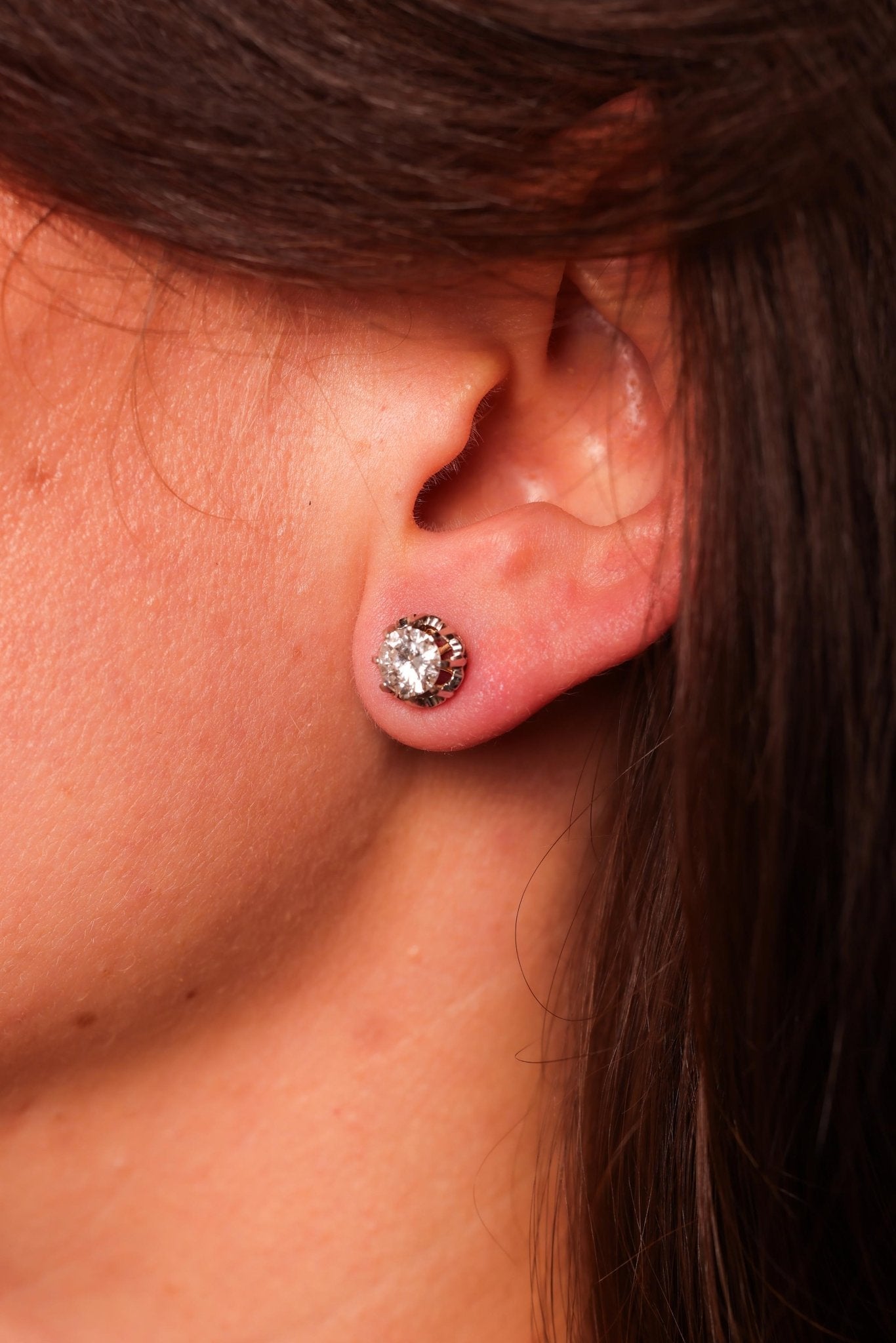 Edwardian Style Diamond Yellow Gold Stud Earrings Trumpet Horn Very well made.