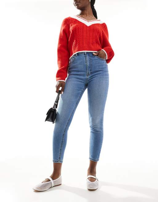 Stradivarius Super High Waist Skinny Jeans In Medium Blue for Women Very well made.