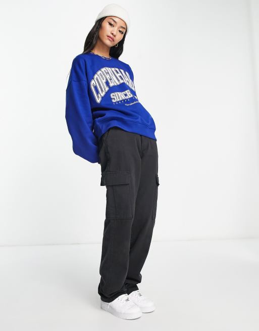Bershka slogan detail cuffed jogger in cobalt blue ASOS Very well made.