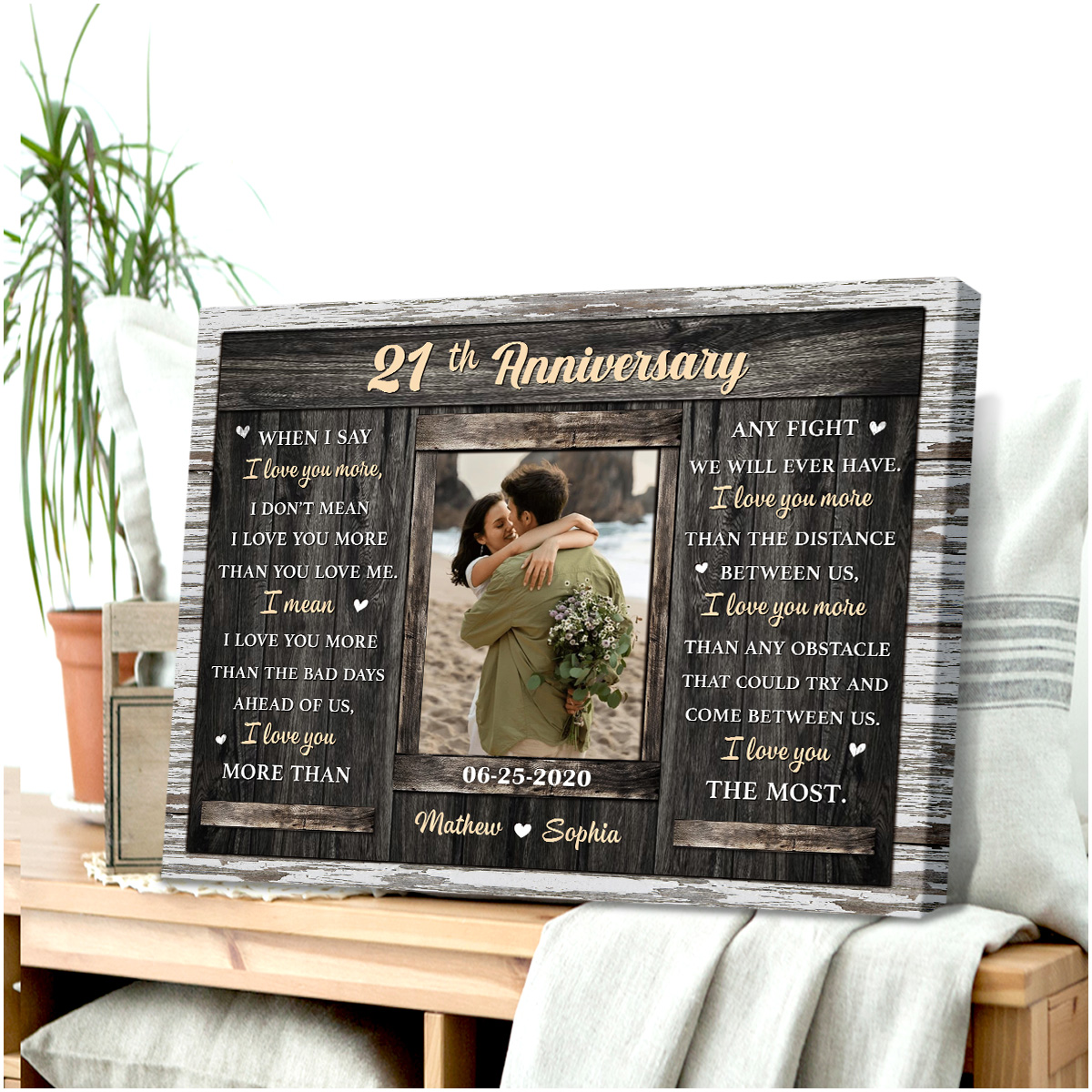 Unique 21st Anniversary Gift I Love You More Canvas Wall Art Very well made.