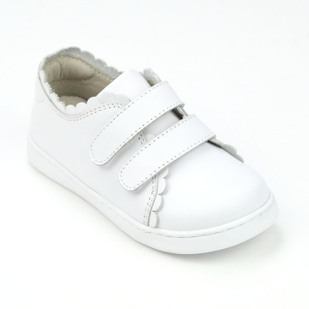 L Amour Girls Caroline Double Velcro Scalloped Leather Sneaker L Amour Shoes Very well made.